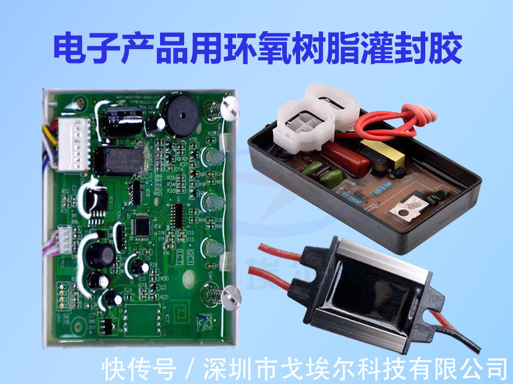 灌封胶是在工业制造中应用很多的一类胶水,根据产品的实际应用与胶水材料的不同,电子灌封胶有着多种分类,从材料方面来说就有环氧树脂灌封胶、有机硅胶灌封胶、聚氨酯灌封胶等;从剂型方面来说有单组分和双组分两类;从固化方面来说有常温固化与加热固化两种。不同的胶水有着不同的应用与作用,因此在使用电子灌封胶灌封时要选择合适的胶水,那么环氧灌封胶在电子元器件中的作用是什么呢?